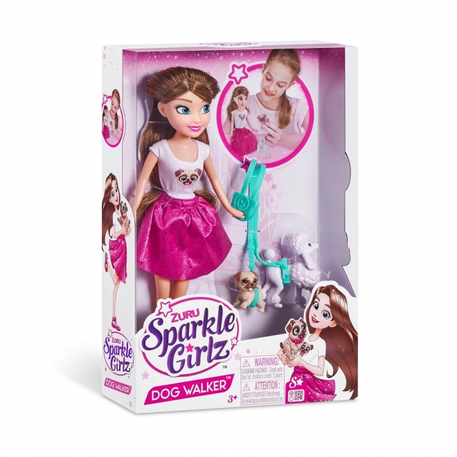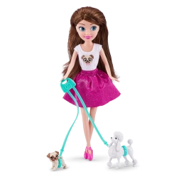 Tato stylová panenka Sparkle Girlz je skvělou volbou pro děti, které milují zvířátka a imaginativní hry. Díky dvěma pejskům a dvojici vodítek si mohou užít společné procházky, péči i spoustu příběhů.