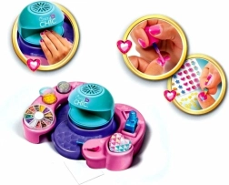 S dětskou sadou CRAZY CHIC vytvoří vaše děti vlastní designy nehtů snadno a zábavně. Praktická základna s přihrádkami udržuje všechny doplňky pohromadě a integrovaná sušička nehtů zkracuje čekání na zaschnutí.