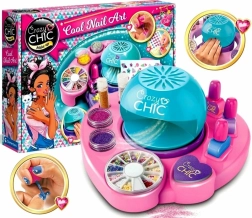 Proměňte doma čas na malý salon krásy se sadou CRAZY CHIC pro děti. Najdete v ní sušičku na nehty, barevné laky, třpytky, samolepky i pilníček – vše pro kreativní nail art a parádní manikúru.