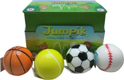 Zábavný měkký a ultralehký skákací míček s průměrem 9,6 cm se skvěle odráží jako klasický hopík. K dispozici je assort motivů (sport, zvířátka, ovoce), vhodný pro děti od 3 let.