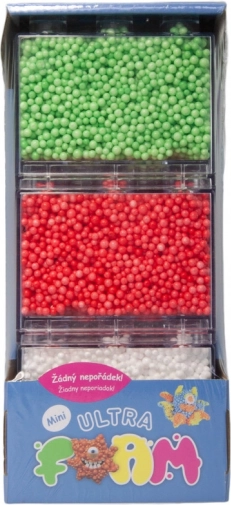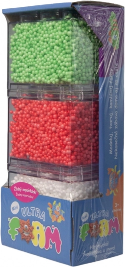 Mini balení Ultra Foam obsahuje tři barvy: zelenou, červenou a bílou, které můžete kombinovat a vytvářet různé tvary.