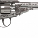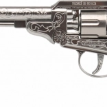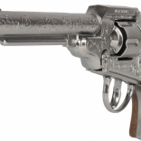 Revolver v této sadě je bohatě zdobený krásnými gravíry, což z něj dělá nejen skvělou rekvizitu, ale také stylový sběratelský kousek.