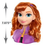 Oblíbená hrdinka ANNA přichází jako stylovací hlava s krásnými, dlouhými a hebkými vlasy připravenými k česání, zaplétání i zdobení. Díky pevnému bustu a detailnímu zpracování obličeje je hra nejen zábavná, ale i vizuálně poutavá. Děti mohou trénovat různé techniky úpravy vlasů a vymýšlet vlastní pohádkové looky.