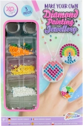 Tato kompletní sada na výrobu šperků pomocí techniky diamantového malování podporuje fantazii, jemnou motoriku a soustředění. Děti si vyberou z 9 šablon pro přívěsky a 4 šablon pro prstýnky, nasypou kamínky do podložky a pomocí přiložené tužky je jednoduše nanesou na lepivý povrch. Výsledkem jsou třpytivé a jedinečné doplňky, které mohou hrdě nosit nebo darovat.