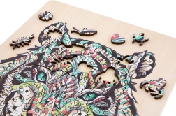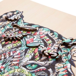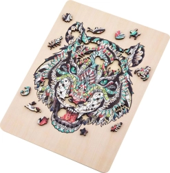 Tato stylová sada dřevěných puzzle přináší spojení kreativní zábavy a estetického výsledku. Obrysový tvar a speciální výřezy zvyšují atraktivitu skládání, které potěší děti i dospělé. Díky kvalitnímu zpracování dílky přesně lícují a motiv tygra vynikne v živých detailech.