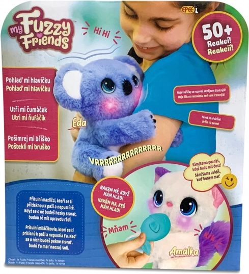 Objevte kouzlo interaktivního plyšového zvířátka koaly Edy z řady My Fuzzy Friends. Tento mazlivý přítel reaguje na dotek a interakci více než 50 různými způsoby včetně zvuků a pohybů. Eda má speciální klouby, které mu umožňují obejmout dětskou paži a přitulit se k ní. Koalu můžete hladit, lechtat, nakrmit, utřít mu nos a dokonce i pomoci usnout.