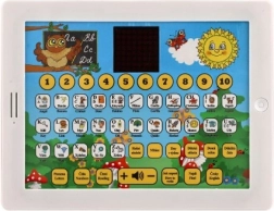 Dětský vzdělávací tablet TEDDIES Moudré sovy je ideální interaktivní pomůcka pro předškoláky i mladší školáky. Díky dotykovému ovládání a přehlednému LCD displeji si děti hravou formou procvičí abecedu, čísla, základní slovní zásobu v češtině i angličtině a osvojí si pojmy jako roční období, měsíce a dny v týdnu. Nechybí ani užitečné informace z dětské etikety a důležitá telefonní čísla.