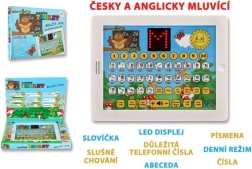 Objevte zábavný způsob, jak se děti učí číst, psát a počítat. Tento dvojjazyčný dotykový tablet s LCD displejem nabízí hry a cvičení v češtině i angličtině, procvičí abecedu, čísla, slovíčka, roční období, měsíce a dny v týdnu. Rozvíjí slovní zásobu, logické myšlení a jemnou motoriku, podporuje zrak a sluch. Součástí balení jsou 3× AAA baterie pro okamžité použití.