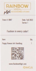 V kolekci najdete 27 různých torebek od stylů každodenních až po večerní. Můžete jít s tote taškami, batůžky, břišními taškami nebo večerními psaníčky. Každá kabelka je zabalena v ikonickém kufříku Rainbow High, které obsahují vysavačový pytlík, papírový ubrousek, samolepku a dokonce i vytištěný doklad s odpovídajícím pouzdrem na doklady.