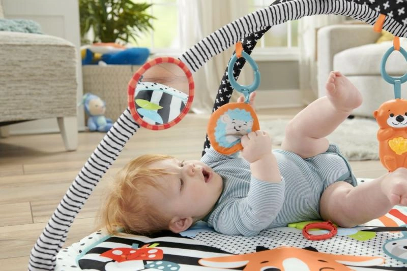 Jak dítě roste, oblouky snadno odejmete a vytvoříte prostornou plochu pro čas na bříšku. Vysoký kontrast barev podporuje raný vývoj zraku, povrch je měkce polstrovaný pro komfort a odolný pro každodenní používání.