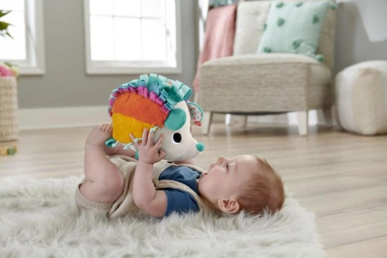 Roztomilý duhový ježek od Fisher-Price je měkoučká smyslová hračka pro miminka s 8 různými texturami a 3 jedinečnými zvuky – šustící bříško, překvapivá znělka uvnitř a pískající nos. Podporuje jemnou motoriku, taktické vnímání a nabízí snadné připnutí dalších hraček pro zábavu doma i na cestách.