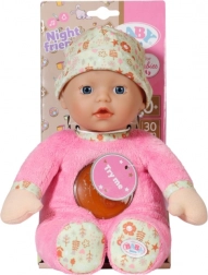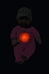 Tato měkoučká panenka o velikosti 30 cm je ideální společník do kolébky i postýlky. Díky integrovanému nočnímu světlu a jemné ukolébavce uklidní miminko a pomůže mu snáze usnout. Měkké textilní tělíčko, plyšové dupačky a vinylová hlavička s čepičkou se hvězdičkami lákají k mazlení a jemnému hraní.
