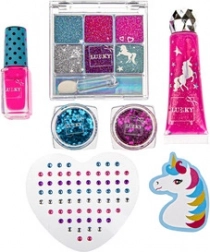 Rozjasněte dětskou fantazii s dětskou sadou líčení LUKKY v motivu jednorožce. V balení najdete třpytivé gely, lesk na rty s příchutí, slupovací lak na nehty, třpytivé oční stíny s aplikátorem, nálepky-drahokamy i pilník na nehty – ideální pro kreativní a hravou zábavu od 3 let.