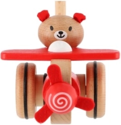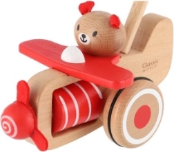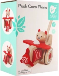 Strkadlo letadlo dřevo 55cm tlačící s tyčkou v krabici 20x28x13cm 12m+