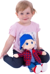 Díky lehké a měkké textilní konstrukci je panáček Tomáš snadno ovladatelný i pro nejmenší děti.