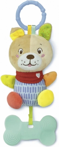 Toto měkké chrastítko pes je ideální první hračka pro nejmenší. Pestrobarevné provedení přitahuje pozornost, různé textury podporují hmatové vnímání a jemný zvuk chrastítka rozvíjí sluchové vjemy. Integrované kousátko poskytuje úlevu bolavým dásním během prořezávání zoubků.