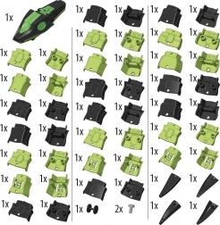 SlitherBot je robotický had, který zaujme děti svou délkou 40 cm a schopností hladce napodobovat přirozené pohyby hada. Po zapojení 12 horních segmentů ke spodním je robot připraven předvést klikatý pohyb umožněný speciální redukcí motoru.