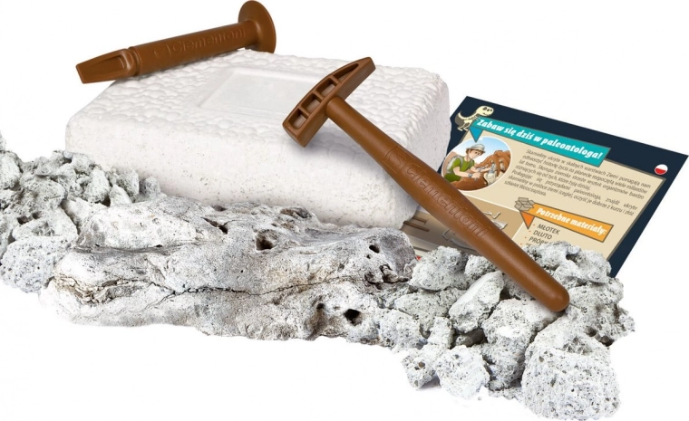Archeologická sada ArcheoFun přináší dětem autentický zážitek z vykopávek. S kladívkem a dlátkem budete krok za krokem odkrývat fosilii ukrytou v bloku zeminy a poté z nalezených částí složíte realistickou kostru velociraptora. Díky fluorescenčnímu materiálu kostra absorbuje denní světlo a září ve tmě, což z ní dělá skvělou dekoraci do dětského pokoje.