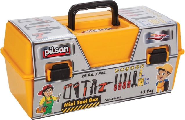 Dětská sada nářadí Pilsan přináší 34 kusů bezpečných pomůcek pro malé kutily od 3 let. Obsahuje vrtačku, šroubovák, pilu, klíč, kladivo, kleště a další příslušenství i montážní desku pro šroubování. Podporuje jemnou motoriku, kreativitu a hračku plnou fantazie při realistických hrách na řemeslníky.