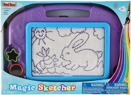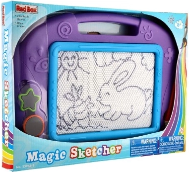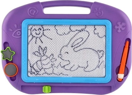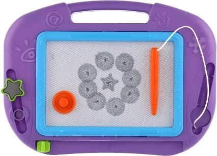 Magnetická plocha umožňuje dětem vytvářet obrázky a vzory pomocí stylusu a razítek. Jedním tahem mazací lišty je vše pryč a prostor je připraven pro novou tvorbu.