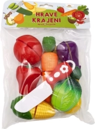 Zábavná dětská sada na hraní do kuchyňky obsahuje plastové prkénko, bezpečný nožík a zeleninu a ovoce na suchý zip, které lze opakovaně „krájet“. Skvělá volba pro rozvoj jemné motoriky, fantazie a rolových her u dětí od 3 let.