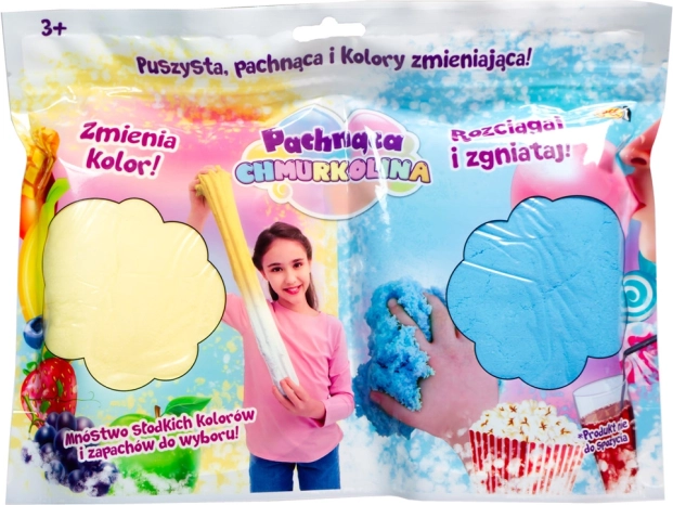 Objevte neomezené možnosti tvoření s Chmurkolinou, měkkou, jemnou a nadýchanou hmotou, kterou lze snadno tvarovat a natahovat. Každá sada obsahuje dvě hmoty s unikátní vůní a schopností měnit barvu.
