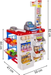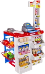 Dětský supermarket je ideální pro malé prodavače i zákazníky. Obsahuje funkční pokladnu s výsuvným šuplíkem, skener čárových kódů se zvukem, obchodní váhu, regály s výrobky a nákupní vozík. Díky bohaté výbavě děti trénují počty, komunikaci i samostatnost.