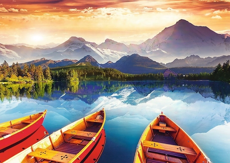 Vychutnejte si náročnou a zároveň uklidňující zábavu s puzzle, které zachycuje klidnou hladinu jezera, dřevěné loďky a monumentální horské štíty. Díky 2000 dílkům je tento motiv ideální pro zkušené skládače, kteří hledají výzvu a dechberoucí výsledek.
