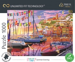 Objevte puzzle neomezených možností s Trefl UFT Vacay Time: letní večer (1000 dílků). Díky Unlimited Fit Technology můžete spojovat více motivů do jedné velké koláže. Čeká vás nejvyšší kvalita z modrého kartonu, unikátní tvary dílků a pevné spojení, které umožní hotový obrazec snadno přenášet. Navíc v eko balení bez plastu.