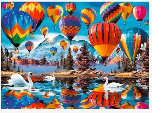 Jedna strana nabízí barevný motiv balónů, druhá stylový vzor. Vyberte si obtížnost a užijte si větší variabilitu skládání.