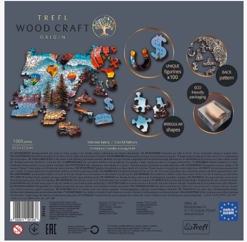 Dopřejte si relax u kvalitního dřevěného puzzle TREFL Wood Craft Origin s bohatě barevnou scénou balónů nad klidnou vodní hladinou. Díky laserové přesnosti jsou jednotlivé dílky robustní, hladké a drží tvar, což zajišťuje příjemný a plynulý zážitek ze skládání.