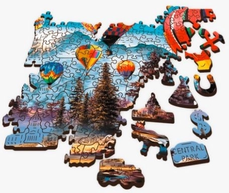 Puzzle je oboustranné – z jedné strany nádherný obraz, z druhé stylový vzor – a obsahuje přibližně 100 speciálně tvarovaných dílků připomínajících slavné stavby, zvířata či dopravní prostředky. Zbytek dílků má nepravidelné tvary, které zvyšují zábavu a výzvu. Součástí balení je také předloha pro snadnější skládání a ekologické balení bez plastů.