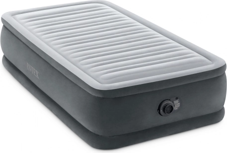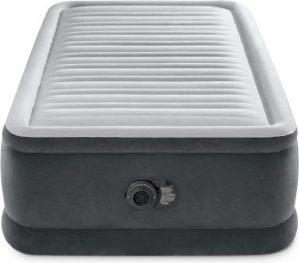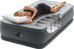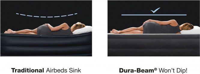 Nafukovací postel Intex Deluxe je skvělou volbou pro hosty, do pronájmu i na dovolenou. Vyvýšená konstrukce 46 cm usnadňuje vstávání a měkký, flokovaný povrch zajišťuje příjemný dotyk i spolehlivé držení prostěradla. Vnitřní výztuhy Fiber-Tech z odolných polyesterových vláken udržují matraci pevnou a tvarově stálou, zatímco systém Dura-Beam rovnoměrně rozkládá hmotnost a podporuje správné zarovnání páteře.