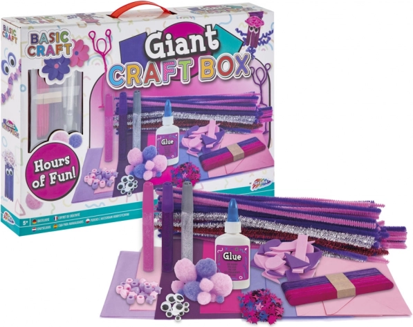 Objevte kreativní box pro děti plný růžových a fialových doplňků, který nabízí hodiny tvoření. V balení najdete chlupaté drátky, bambulky, pěnové tvary, korálky, očka i lepidla včetně třpytivého. Přenosná krabice s uchem zaručí, že budete mít vše po ruce doma i na cestách. Ideální pro děti od 5 let.