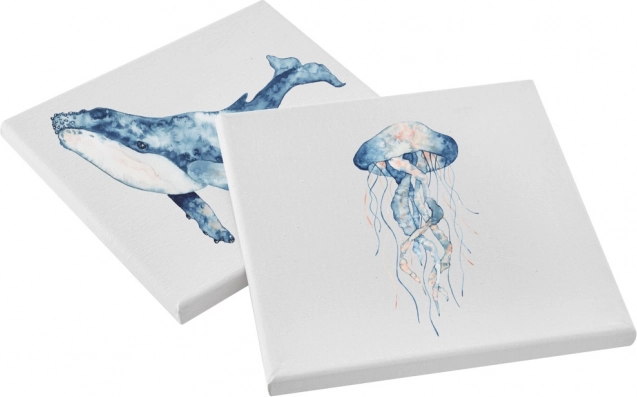 Univerzální bavlněná plátna 20 × 20 cm jsou předepnutá na rám a připravena k použití, takže se můžete rovnou pustit do tvorby. Jemná struktura vlákna zajišťuje dobrou přilnavost barev a čisté tahy štětcem.