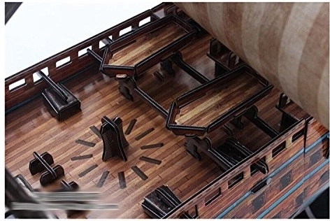Sestavení je intuitivní díky přehlednému návodu – předražené dílky jednoduše vylomíte z archu. Hotový model o rozměrech cca 65 × 18 × 56 cm se stane výraznou dekorací obývacího pokoje, kanceláře nebo dětského pokoje a zároveň potěší každého nadšence do námořní historie.