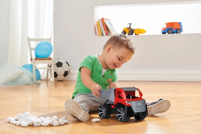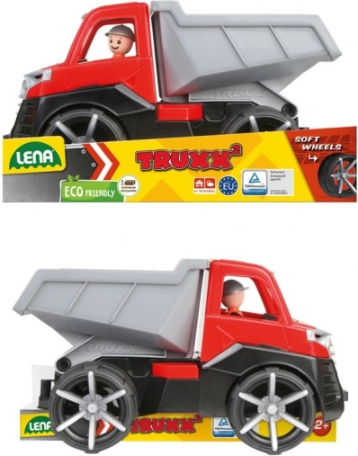 Sklápěč LENA TRUXX 2 je moderní hračka pro malé milovníky techniky. Nabízí realistické funkce, které podporují kreativní hru – odklopná střecha zpřístupní kabinu s figurkou řidiče a výklopná korba s pojistkou bezpečně převeze a vysype náklad přesně tam, kde je potřeba.