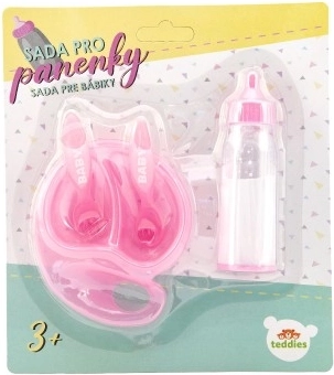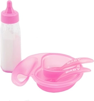 Tahle sada pro panenky je ideálním doplňkem pro každou malou opatrovatelku. Připrav lahodné pokrmy do mističky a podávej je své panence pomocí přiložené lžičky a vidličky. Pozoruj, jak se mléko v lahvičce 'vypaří', když dáš panence napít, a znovu se objeví, když lahvičku otočíš. Tato sada přináší hodiny zábavy a podporuje rozvoj jemné motoriky a péče o druhé.