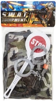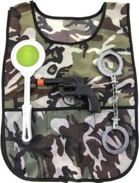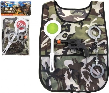 Policejní sada plast pistole klapací 15x9cm, pouta, plácačka, vesta v sáčku 18x32cm