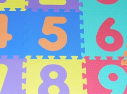 Barevné pěnové puzzle s vyjímatelnými čísly vytváří měkkou a bezpečnou hrací plochu pro děti. Izoluje chlad, tlumí hluk, je voděodolné, zdravotně nezávadné a snadno se skládá i uklízí.