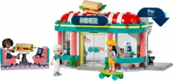 Vytvořte si vlastní restauraci s barevným setem LEGO Friends Bar v centru Heartlake, který přináší drive‑thru okénko, venkovní posezení, automat na hry a pohyblivý jukebox. Děti si užijí připravování sendvičů z lednice, obsluhu zákazníků i jízdu na skateboardu – a možná přijde i mazaná kočka na návštěvu!