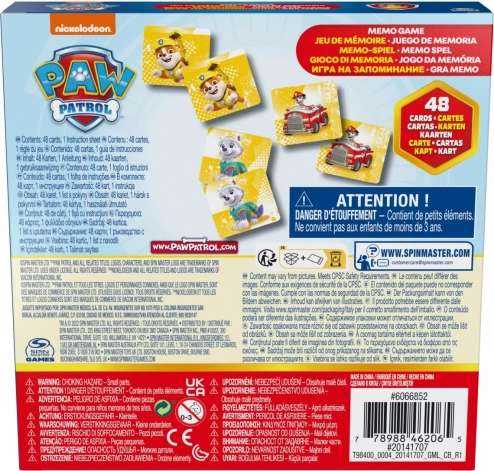 Pexeso PAW PATROL je klasická paměťová hra s oblíbenými postavičkami, která spojuje jednoduchá pravidla se zábavou pro celou rodinu. Díky pevným kartičkám a jasným ilustracím je ideální pro první společenské hry dětí.