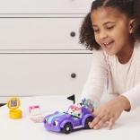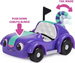 Vyrazte na zábavný piknik s Kicifurou a Kiciušem Pandušem ze světa GABBY’S DOLLHOUSE. Tento hravý set přináší pohyblivé autíčko napůl kočka, napůl vůz, exkluzivní figurku a spoustu doplňků pro tvořivou hru. Kicifura vrtí ocasem při jízdě, mrká a otáčí oči, a set obsahuje piknikovou dečku, chladičku i tajnou zásilku s překvapením – růžové sluneční brýle pro Kiciuše Panduše.