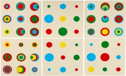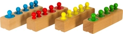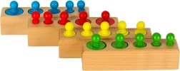 - 4× dřevěná podstavka; 5× zelený válec; 5× červený válec; 5× modrý válec; 5× žlutý válec