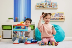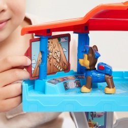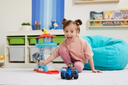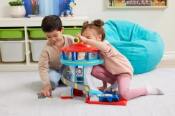 Umístěte Chase v civilu na přední část výtahu a Chase-hrdinu na zadní. Zvedněte výtah a sledujte, jak se Chase v civilu mění na Chase-hrdinu. Na vrcholu věže vyberte z jedné z 3 oboustranných karet mise a zjistěte, co je úkolem dne. Až bude čas na záchrannou akci, svezte se po skluzavce přímo do policajního auta Chase a vyrazte do akce stisknutím odpalovače aut. Pro ještě více zábavy můžete sbírat další štěňata jako Marshall, Skye a Rubble s jejich vozidly.