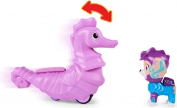Představujeme vám figurku Coral z edice Aqua Pups inspirovanou seriálem Tlapková patrola. Coral, poloviční mořská panna, je oblečena do pestrobarevného obleku a helmy a její hlava je pohyblivá. Součástí sady je také mořský koník, na kterém může Coral jezdit.