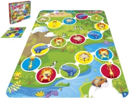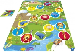 Na první úrovni 'Animal Safari' se děti snaží pohybovat po safari stezce, čímž objevují barvy a znovu si procvičují zvuky a pohyby zvířat. Převraťte podložku a přejděte na druhou úroveň 'Animal Party', kde děti točí kolem a zjišťují, kam umístit ruce nebo nohy.