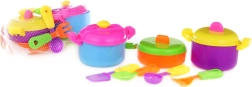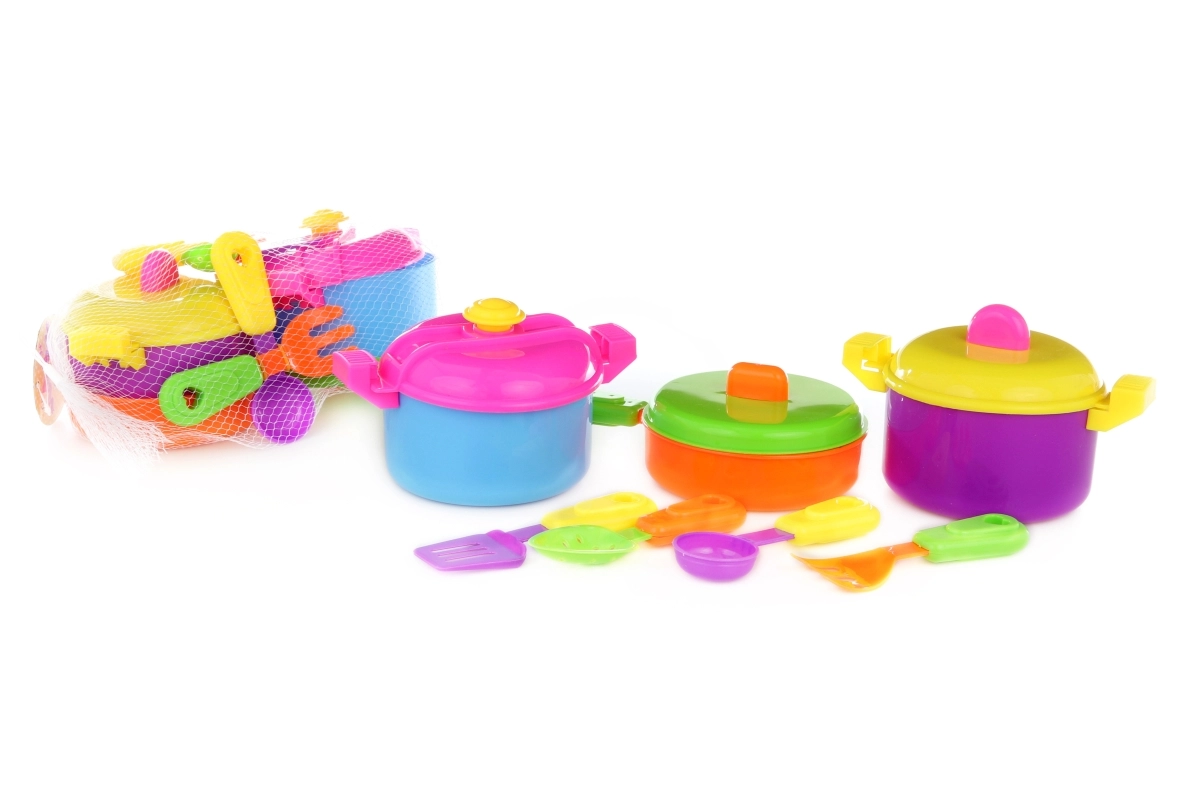 Set je skvělý doplněk k dětským kuchyňkám a nabízí bezpečné a zábavné hraní. Děti mohou „vařit“ pro rodinu i kamarády, učí se základům stolování a rozvíjejí svou představivost.