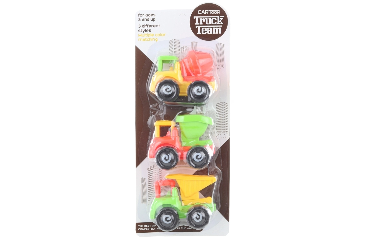 Objevte zábavnou sadu tří stavebních autíček pro malé stavitele. Ideální pro děti od 3 let, podporuje fantazii a koordinaci. Odolné provedení, snadné ovládání a perfektní velikost do dětské ruky.