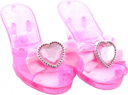 Růžové střevíčky s vysokým podpatkem a ozdobnými srdíčky a mašličkami jsou ideální pro každou malou princeznu.